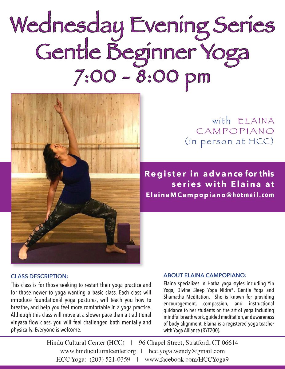 Wednesday Evening Gentle Yoga with Elaina Campopiano 7:00 PM - 8:00 PM in the old Mandir/Temple